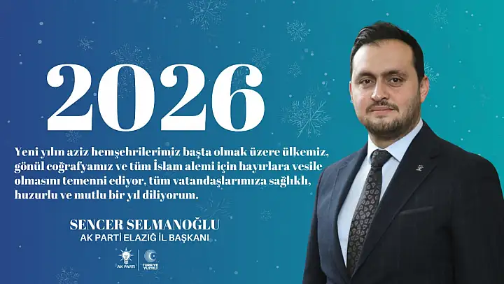 Haberler Güncel Başkan Selmanoğlu'ndan Yeni Yıl Mesajı Başkan Selmanoğlu'ndan Yeni Yıl Mesajı Ak Parti Elazığ İl Başkanı Sencer Selmanoğlu yeni yıl mesajı yayımladı. PAYLAŞ 30.12.2025 19:13 Güncelleme: 30.12.2025 19:14