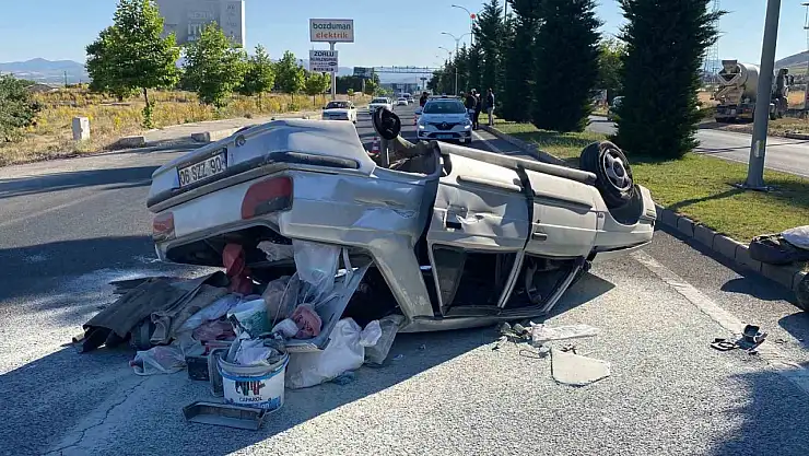 Elazığ'da beton mikseri ile çarpışan otomobil, karşı şeride geçerek ters döndü. Kazada otomobilin tekerleği yerinden koparken 4 kişi yaralandı.