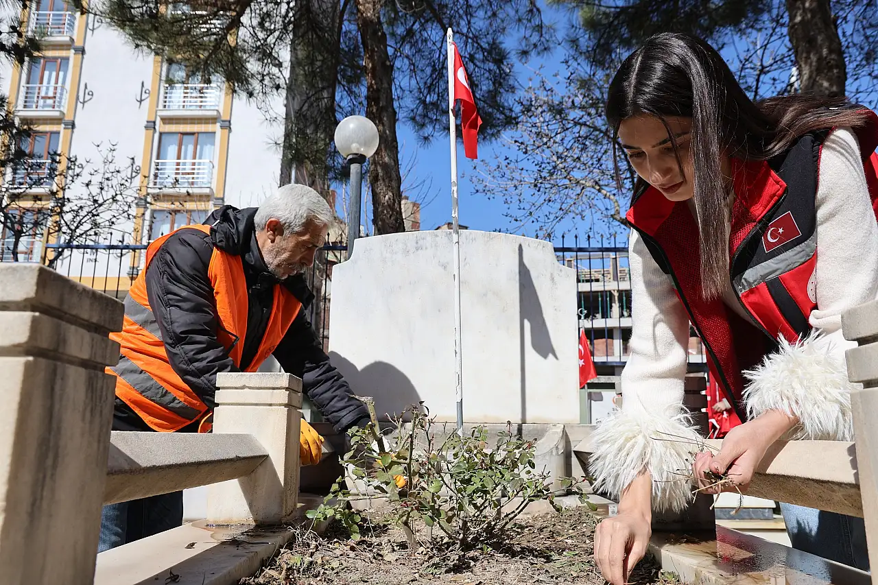 Elazığ'da Aile ve Sosyal Hizmetler İl Müdürlüğü ekipleri Ramazan Bayramı öncesi şehitliklerde bakım, onarım ve temizlik çalışması yapıldı.