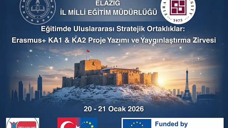 Elazığ İl Milli Eğitim Müdürlüğü Ve Fırat Üniversitesi iş birliğinde 20-26 Ocak tarihleri arasında Erasmus Pılas proje yazımı ve yaygınlaştırma zirvesi düzenlenecek.