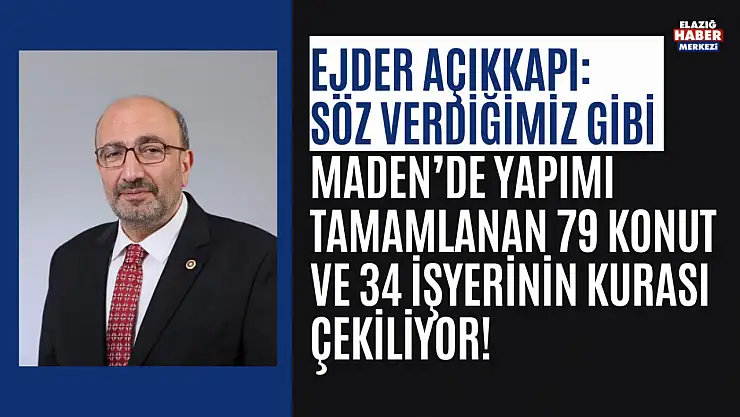 AK Parti Elazığ Milletvekili, TBMM Plan ve Bütçe Komisyonu Üyesi ve AK Parti Grup Yönetim Kurulu Üyesi Ejder Açıkkapı, Maden ilçesinde vatandaşlara verdikleri sözleri yerine getirdiklerini söyleyerek 5 Mayıs 2025 Pazartesi günü Maden’de yapımı tamamlanan 79 konut ve 34 işyerinin kurasının gerçekleştirileceğini duyurdu.