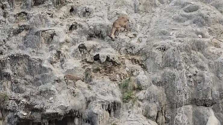 Elazığ’ın Karakoçan ilçesi ile Tunceli’nin Mazgirt ilçesi arasında bulunan Bağin kaplıcaları yakınlarında sarp kayalıklara tırmanma özellikleri ile tanınan koruma altındaki dağ keçileri bir vatandaş tarafından görüntülendi. Sarp kayalıklarda yiyecek arayan dağ keçileri daha sonra gözden kayboldu. O anlar cep telefonu ile kayıt edildi.