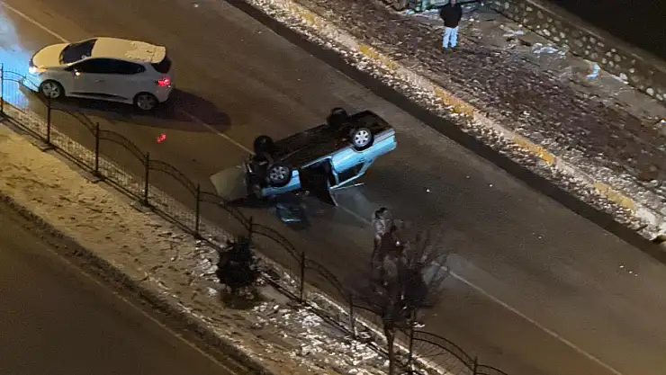 Elazığ'da Olgunlar Mahallesi Atatürk Bulvarı meydana gelen trafik kazasında bir otomobil takla atarak ters bir şekilde durdu.