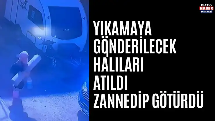 Elazığ'da bir kadın, yıkamaya gönderilmek üzere kapı önüne konan halılardan bir tanesi alarak gitti. O anlar kameralara yansıdı.